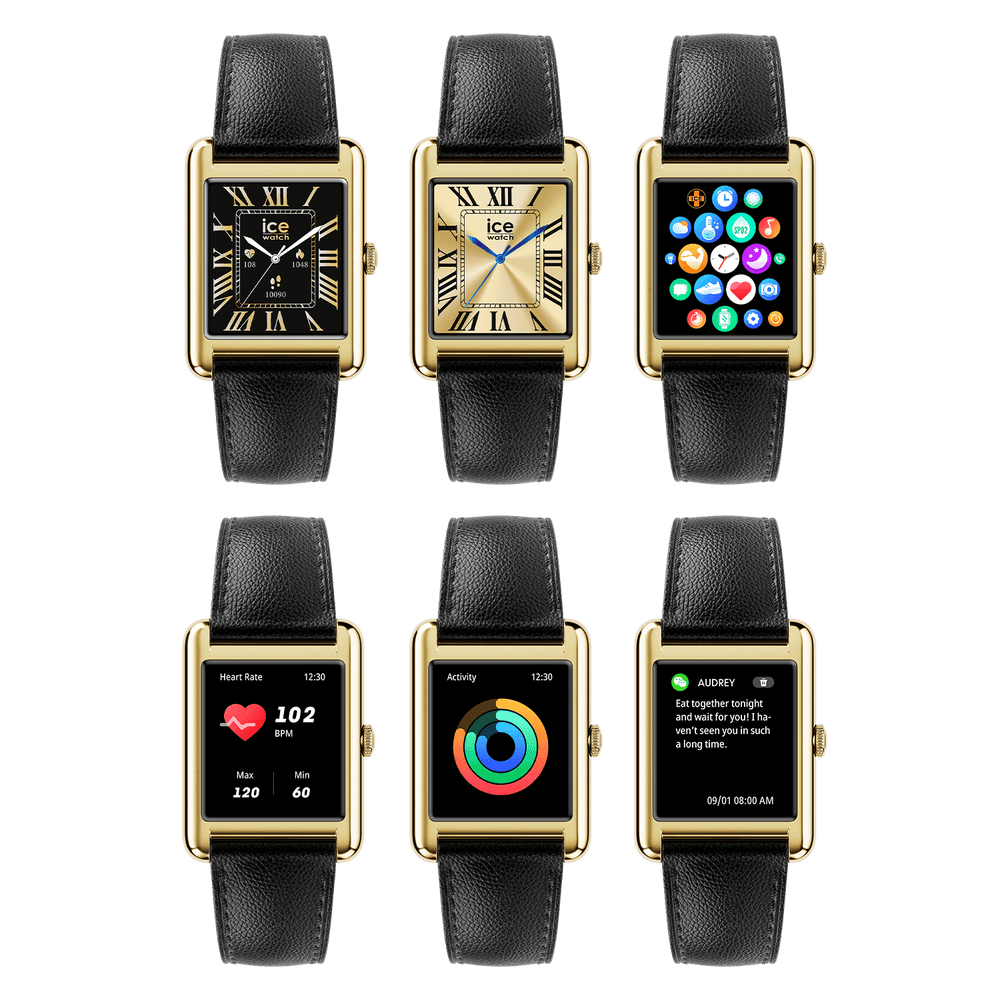 Met zijn gouden kast en zwarte leren band met nerf heeft de ICE smart TKS 2.0 - Gold black 025286 een sobere en gedistingeerde uitstraling. Dit echte smartwatch met horlogedesign biedt u de mogelijkheid om te bellen, uw berichten te bekijken, uw activiteiten te controleren en uw hartslag bij te houden, en dat alles met stijl en precisie. Dankzij het touchscreen en de personaliseerbare wijzerplaten past het horloge bij alle wensen en stijlen. Een juweel van een horloge dat elegantie en prestaties combineert voor dagelijks gebruik.