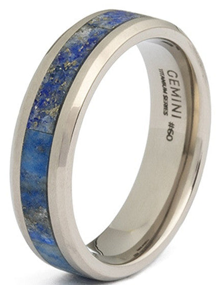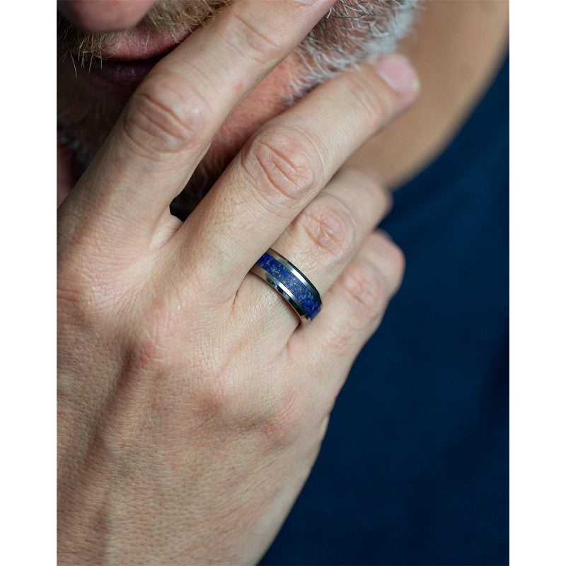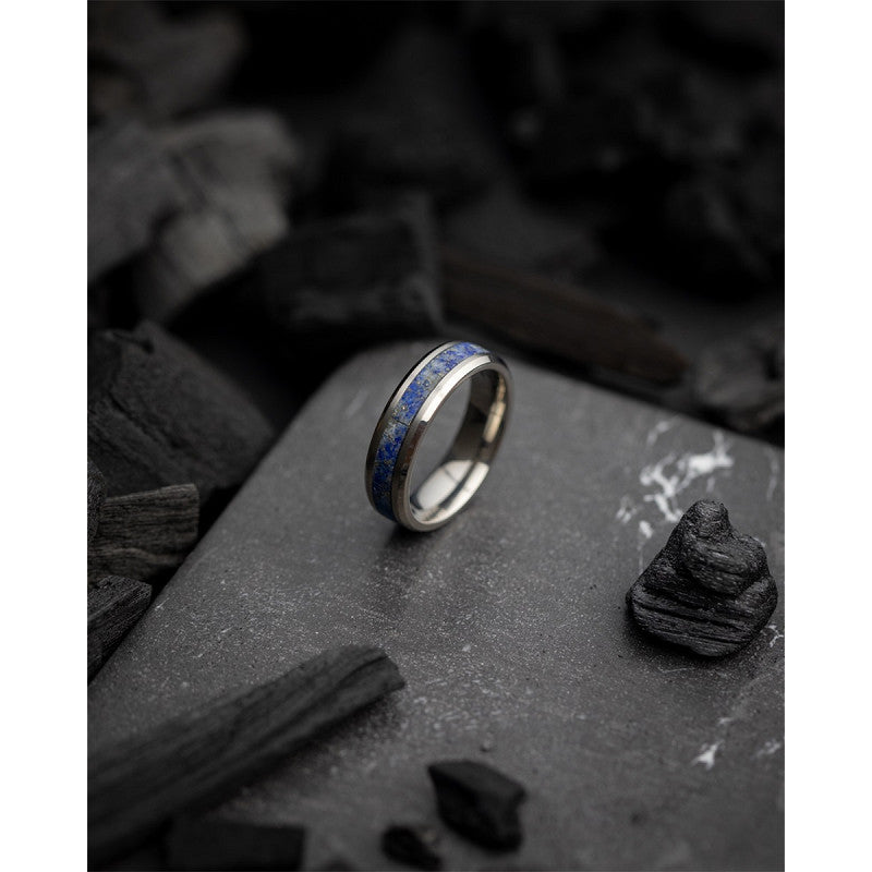 Vertel jou verhaal met deze zilverkleurige Gemini ring ROT01 in titanium, gemaakt uit titanium en Lapis Lazuli steen.