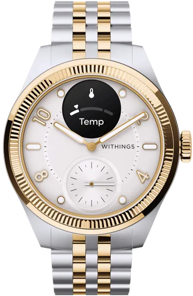 Je vindt jouw sport- en gezondheidsdata in de Withings Health Mate app. De bicolor Jubilé horlogeband geeft de smartwatch een luxe, tijdloze uitstraling. Het horloge is krasbestendig dankzij de roestvrij stalen band en kast én heeft ook een saffierglas. De batterij van de Scanwatch Nova Brilliant gaat tot 30 dagen mee, dus je houdt het horloge dag en nacht om. Ook als je gaat douchen, want het horloge is waterdicht tot 5 ATM.
