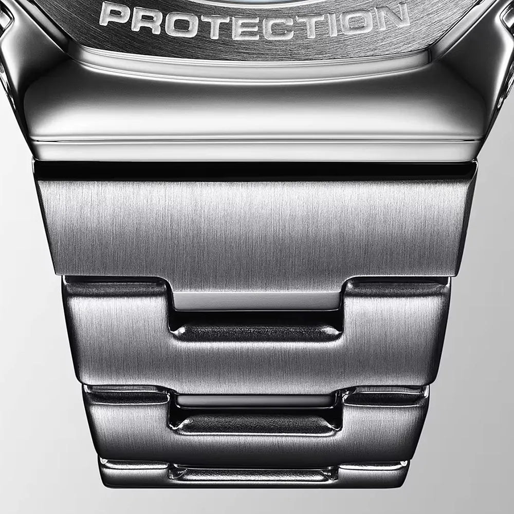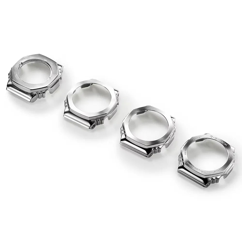 De uniforme achthoekige roestvrijstalen rand is zorgvuldig gesmeed en gepolijst en omsluit een eenvoudig ontwerp zonder poespas met een verfijnde, maar stoere uitstraling. De kast met hoge stijfheid is van fijnhars en versterkt met glasvezel, en is de dunste van alle G-SHOCK-combinatiemodellen, met slechts 11,8 mm.