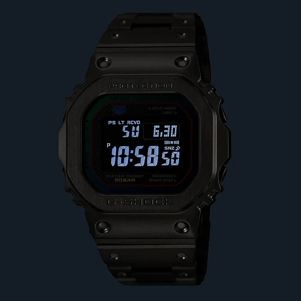 Het horloge zit ook boordevol praktische functies, waaronder een tijdcorrectiesysteem dat gebruikmaakt van standaard tijd- en frequentiesignalen (Multi-Band 6), een betrouwbare energiebron in de vorm van Tough Solar-technologie, volledig automatische led-achtergrondverlichting met hoge helderheid, wereldtijd en weergave van de dag van de week in zes talen. Dit G-Shock-model blijft trouw aan zijn voorganger, terwijl het verder is verfijnd door het volledig metalen ontwerp.
