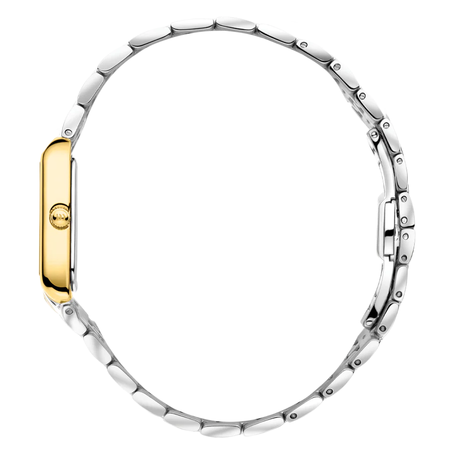 Ontdek de tijdloze elegantie van de Marie Two-tone Petite, een prachtig horloge dat de perfecte combinatie biedt van Scandinavische verfijning en klassieke stijl. Met de rechthoekige kast en wijzerplaat straalt dit horloge pure klasse uit en is het perfect voor de moderne vrouw met een voorliefde voor tijdloze mode. De Marie Two-tone Petite wordt gekenmerkt door zijn verfijnde design en hoogwaardige afwerking. Met een kast van 19,5 x 22 mm is dit horloge subtiel en elegant, waardoor het geschikt is voor elke gelegenheid, van een dag op kantoor tot een avondje uit.
