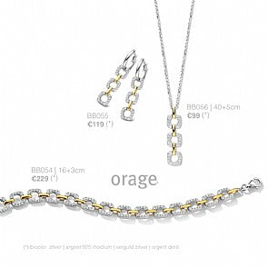 Orage Silver is een Belgisch sieradenmerk voor gracieuze dames die houden van een “touch of fashion”. De tijdloze klassiekers die niet mogen ontbreken in ieders sieradenkist, vind je bij Orage Silver aan een uitstekende prijs-kwaliteitsverhouding. Het merk laat zich inspireren door de huidige modetrends, zonder in te boeten op elegantie. Een Orage Silver juweel of sieradencombinatie staat goed bij elk seizoen, outfit en gelegenheid.
