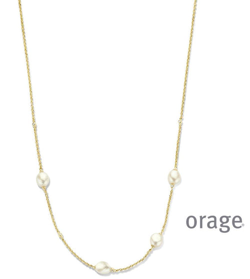 Laat je schoonheid schitteren met deze 18k verguld zilveren halsketting K/7668/45 van Orage Silver. Deze werd afgewerkt met zoetwaterparels.